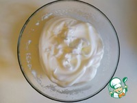 Разделить желтки и белки. Белки взбить до жёстких пиков. |