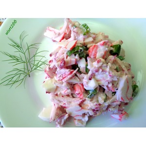 Описание: Быстрый, хрустящий и яркий салат с максимумом вкуса. Острота редиса и свежесть зеленого лука, сытность яйца и крабовых палочек великолепно сочетаются. Все ингредиенты нужны и важны.