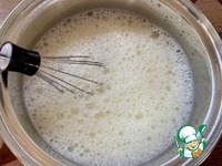 Сразу перелить погашенную соду в тесто, перемешивая быстро венчиком. |