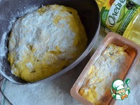 Мякоть тыквы сварить или запечь, выложить в дежу комбайна. Влить тёплый кефир и растительное масло, соль, сахар, смешать до однородности. |