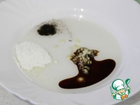 Добавить крахмал, соевый соус, перец (у меня черный вместо красного) и чеснок, натертый на мелкой терке или пропущенный через пресс. Перемешать. |