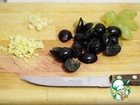 Пока курица маринуется, нарезать виноград на половинки, мелко нарезать чеснок и имбирь. Количество чеснока и имбиря должно быть примерно одинаковым, поэтому я указываю их объем, а не вес. |