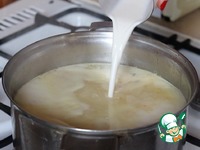 Вливаем сливки, доводим до кипения и варим 5 минут. |