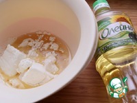 В чашу высыпаем муку, выкладываем творог и вливаем растительное масло. |