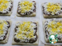 Вырезаем печенье - я делала прямоугольное. Выкладываем на противень на пергамент. |