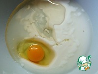 Тесто: в миске соединить кефир и воду (комнатной температуры), яйцо и растительное масло. Перемешать. |