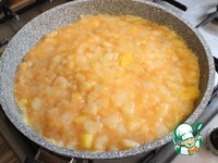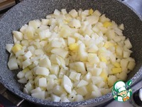 В разогретую чистую сковороду вливаю 1 ст. л. подсолнечного масла. Выкладываю половину яично-картофельной смеси. Жарю на огне чуть ниже среднего 1 минуту, чтобы схватилась основа. |