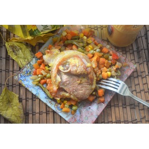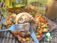 Переложить овощи в огнеупорную форму, сверху выложить кусочки индейки. Поставить в разогретую духовку при 180С-200С, готовить до готовности. (при желании мясо можно потушить на сковороде). |