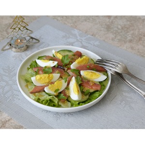 Описание: Свежий, ароматный салат из малосольного лосося с горчичной заправкой. Такие лёгкие салаты всегда востребованы на Новогоднем столе, при этом делаются очень быстро.