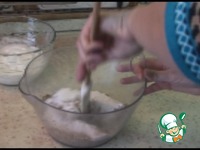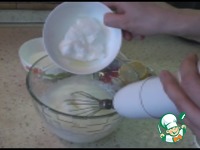 Потом добавляем понемногу взбитый белок и замешиваем тесто. |
