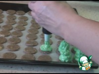 Перекладываем безе в кондитерский мешок, насадку я взяла звездочку и отсаживаем на печенье ёлочки. |
