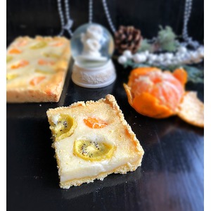 Руками крошку примять прямо в форме, формируя небольшие бортики. Киви очистить и нарезать тонкими кружочками. Мандарин очистить от кожуры и плёнок. |