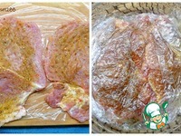 Мясо порезать на порционные кусочки, ароматизировать приправой и отбить. Дать мясу отдохнуть минут 30 в холодильнике. |