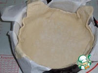 Пласт слоеного теста слегка раскатываем с помощью скалки и переносим в форму для выпечки, застелив ее пергаментом. Формируем бортики. |