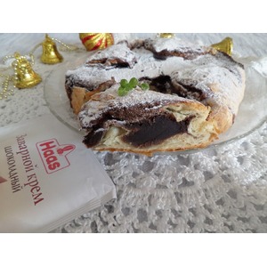 Описание: Многие знают, что слоеное тесто - палочка-выручалочка для хозяюшек. Этот пирог - еще одно тому подтверждение. В качестве начинки пирога - шоколадный заварной крем ТМ "Haas". Попробуйте приготовить.