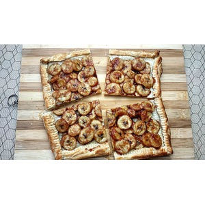 Описание: Простой рецепт тарта из слоеного теста с карамельными бананами.