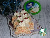 Описание: Рулет из лаваша - закуска для любого праздничного стола! Какое разнообразие начинок можно придумать! У меня сегодня рулет с начинкой из творожного сыра с зеленью, маринованного огурчика, моркови и яиц. Новый Год - отличный повод приготовить этот рулет. Очень быстро, вкусно и просто!