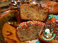 Остывшие кексики смазать медом (или сиропом, вареньем), обвалять в шоколадных крошках или разноцветной посыпке, украсить по своему желанию. Очень вкусно и празднично! |