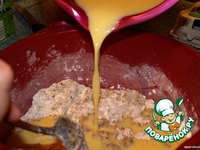 Сахарную пудру, ванильный сахар, яйцо и молоко смешать, влить в мучную массу, все хорошо перемешать |