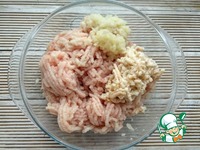 Пропустить через мясорубку лук и отжатый белый хлеб. |