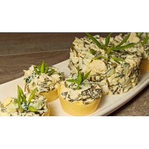 Так же хочу предложить оригинальную подачу, в сырных тарталетках. Уверена такая подача салата украсить ваш стол, тем более, что делать их очень просто и легко!