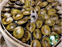 Выложить половинки слив на решетки дегидратора. Сначала слегка, совсем чуть-чуть присолить. А вот сахара пошло примерно одну чайную ложку на четыре половинки. |
