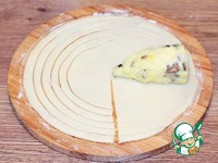 16. Кладем заготовку на круг и заворачиваем в тесто. |
