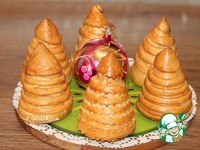 Описание: Румяные, закусочные пирожки, оформленные в виде елочек. Тесто готовится без яиц на сметане и сливочном масле. Большое количество начинки. Такие пирожки украсят любой праздничный стол.