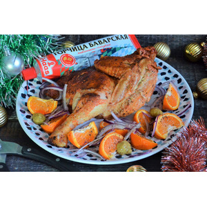 Описание: Праздничный вариант жареной курицы. В обилии паприки и чёрного перца, с сумахом и баварской горчицей. А на гарнир самые новогодние фрукты - мандарины с красным луком. Празднично и красиво! Вкусно и просто! Рекомендую.