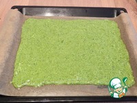 На противень застелим промасленную бумагу, выложим тесто, размазывая равномерно ложкой. У меня получился квадрат 30х30 см. |