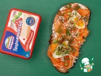 Описание: В центральной части Италии брускетта когда-то считалась традиционным простонародным блюдом, а сейчас она более чем успешно выполняет роль самостоятельной закуски, в том числе и для праздничного стола. Брускетта – это хрустящий горячий хлеб, готовящийся с добавлением оливкового масла и множества иных, самых разнообразных ингредиентов. А от бутербродов либо тостов брускетта отличается тем, что ломтики хлеба предварительно подсушивают либо обжаривают. Предлагаем вашему вниманию невероятно вкусную брускетту с лососем, яйцом и творожным сыром Hochland! Такая брускетта станет не только отличным повседневным перекусом, но и идеально подходящей для праздничного стола закуской!