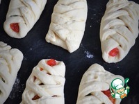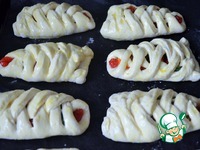 Расстоявшиеся заготовки смазать смесью желтка и сливок. |