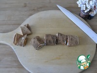 Далее острым ножом отрезаем у рулетика концы, режем на роллы по 3 см. |