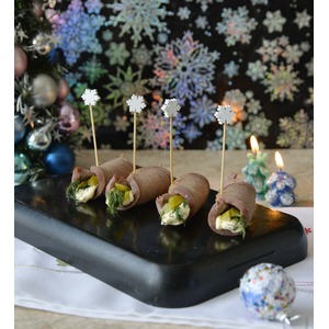 Описание: Новый год совсем близко. Закуски из языка всегда вкусны и красиво смотрятся на праздничном столе. Их можно подать на фуршет.
