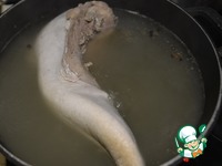 Готовый язык кладём под струю холодной воды, снимаем шкуру. |