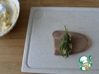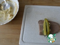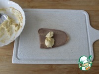 На язык кладём столовую ложку плавленного сыра с горчицей (или хреном). |