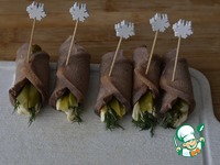 Сворачиваем язык с начинкой, закрепляем зубочисткой или шпажкой. Подаём закуску охлаждённой. Приятного аппетита!!! |
