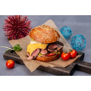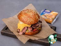 Описание: Бургер на булочке бриошь с тальятой из мраморной говядины получается очень красивым и вкусным. Булочка бриошь – это сладкая булка, приготовленная из сдобного теста с добавлением сливочного масла и пивных дрожжей. Такая булочка будет хороша как сама по себе, так и в сочетании с самыми разнообразными продуктами, но особенно часто она используется для приготовления аппетитных бургеров. А тальята представляет собой не что иное, как нарезанное тонкими слайсами сочное мясо со специями. И булочка бриошь в сочетании с таким мясом и сыром Чизбургер от Hochland – это, пожалуй, самый лучший вариант бургера из всех возможных! Попробуйте и убедитесь в этом сами!
