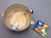 Муку, соль, сахар, дрожжи, яйца, молоко вымесить в тестомесе 15 минут и постепенно ввести сливочное масло. |