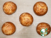 Затем выпечь в режиме "жар-пар" на средней конвекции в духовке 14 минут при 170 градусах, предварительно смазав молоком и посыпав кунжутом. |