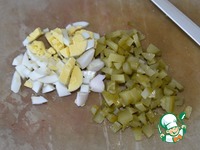 Сыр плавленый заранее, за 30 минут, кладём в морозилку, чтобы легче было нарезать. Режем сыр кубиками, у меня Hochland. |
