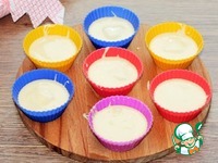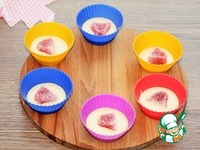 5. Равномерно разливаем тесто по формочкам. В середину кладем по кусочку мармелада. |
