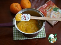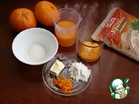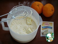 Затем по- очереди к яично- масляной массе вливать мандариновый сок, сливки и всыпать просеянную с разрыхлителем муку. |