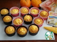 В капкейках сделать небольшие отверстия и заполнить мандариновым курдом. |