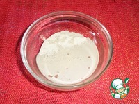 В чашечку выкладываем сахар и сухие дрожжи. Добавляем 2 ст. л. теплой воды, перемешиваем и оставляем на 5 минут. |