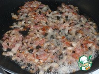 На разогретую сковороду выкладываем бекон и обжариваем до состояния "шкварок". Остужаем. |