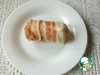 И обернуть полосками бекона. Я запекла при 200 градусах 10 минут, но можно и обжарить на сковороде. |