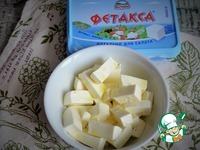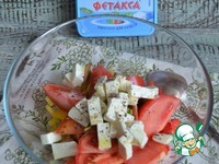 Фетаксу нарезать кусочками, залить оливковым маслом, аккуратно перемешать. |