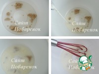 В миску раскрошить свежие дрожжи, добавить немного сахара от общего объема, влить воду и молоко. Перемешать венчиком, оставить на 10мин., чтобы дрожжи активизировались и образовалась "шапочка". |
