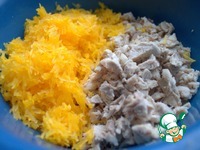 Добавить к курице. Тыквы по объёму примерно столько же, как и курицы. |